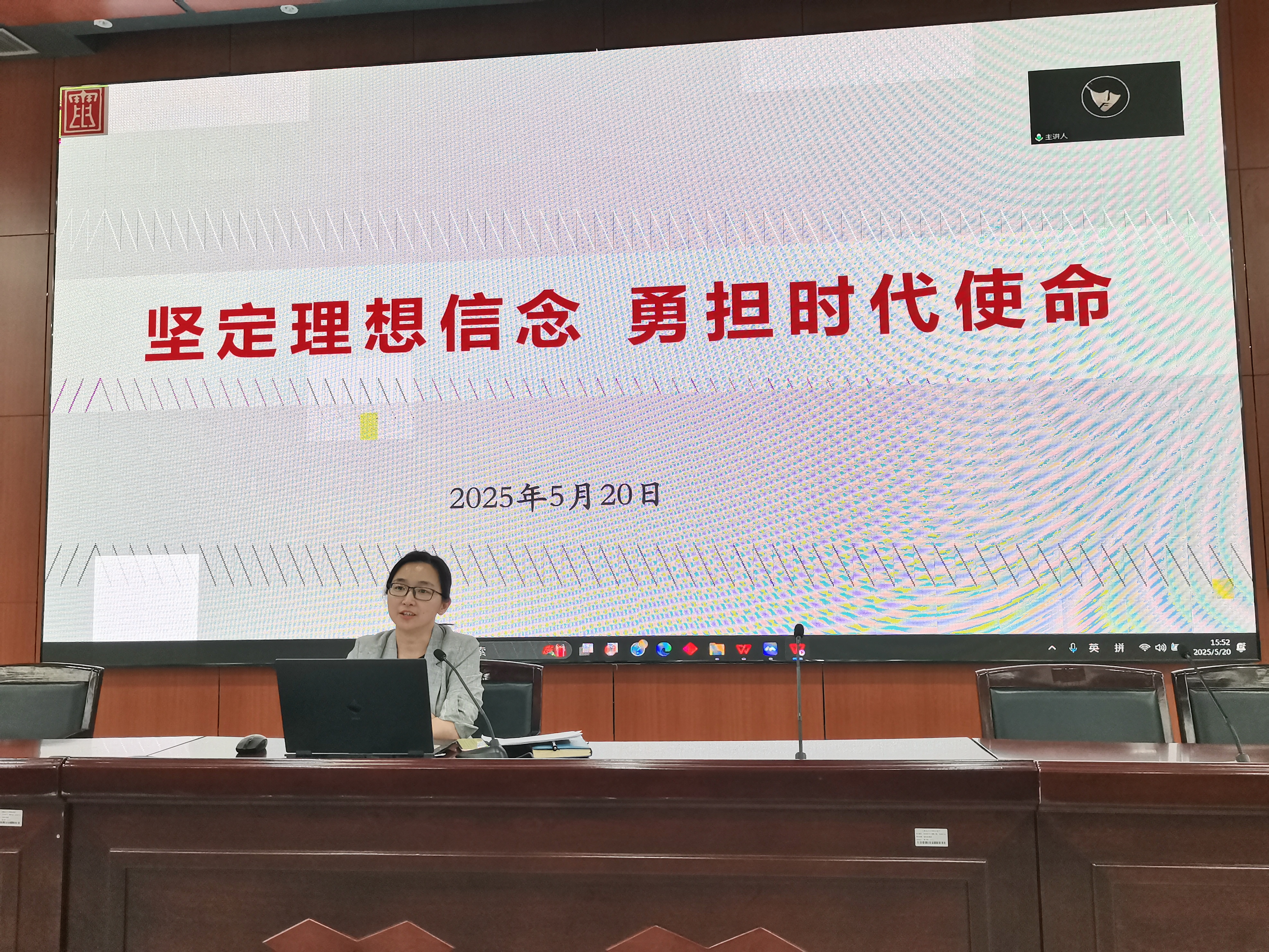 第二环节由学院党委副书记周婷进行理想信念专题党课,周老师以“坚定理想信念、勇担时代使命”为题,从什么是理想信念、为什么要坚定理想信念、如何践行理想信念三个角度和大家做了分享。