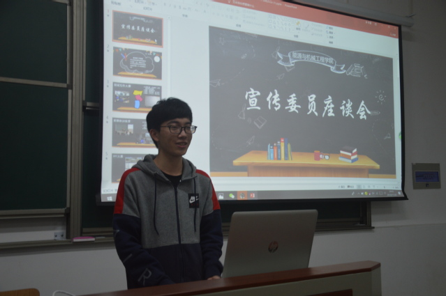 座谈会伊始,媒体工作部部长李冬雪同学放映了媒体工作部制作的迎新采访视频,活跃了座谈会气氛,同时让宣传委员们对网络宣传工作有了初步的了解。接着宣传部部长肖彦博同学进行演讲。他的演讲主要分为两个部分,一、详细介绍了宣传委员的工作职能以及今后有关的班级工作。二、与宣传委员一起探讨了宣传部组织开展的新闻稿大赛、新媒体训练营、PPT大赛等活动与他们之间的联系。为以后宣传委员的工作开展提供了导向。