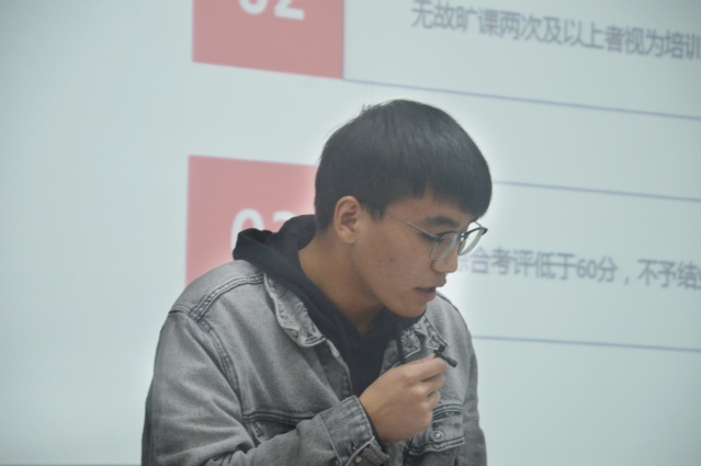 会议在中国共青团团歌中开始,接着由学生会副主席张满为与会人员讲解本次团校的培训目的、课时安排和考核要求等,此次培训旨在提高新一届团委学生会及基层学生干部的意识和能力,加速他们的成长和进步,更好地服务于学院和学校的学生培养工作。