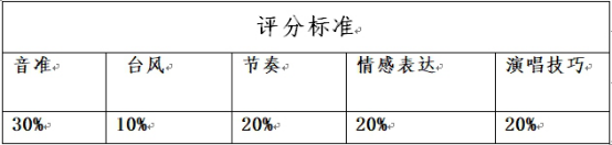 注:选手使用消音伴奏,或原版伴奏,可自弹自唱,两轮比赛共决出四名选手进入到校预决赛环节。