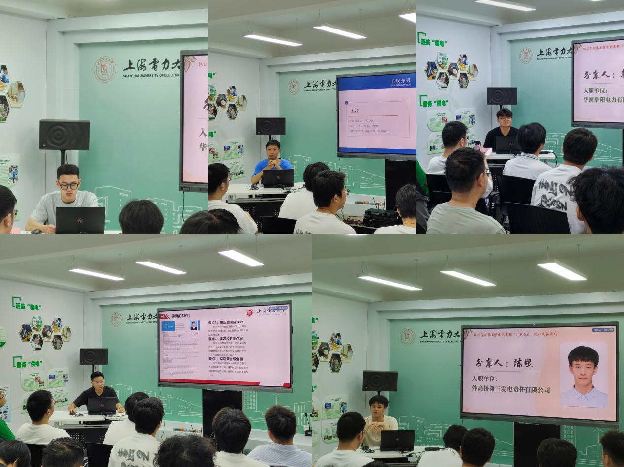2025年5月21日,“青春向党,职业启航”就业交流会作为“红色巴士”的第三站在“一站式”学生社区服务中心开展,特别邀请入职华能、华电、申能等能源央企的五位预备党员组成“职场先锋队”,为60余名2022级学生做经验分享。
