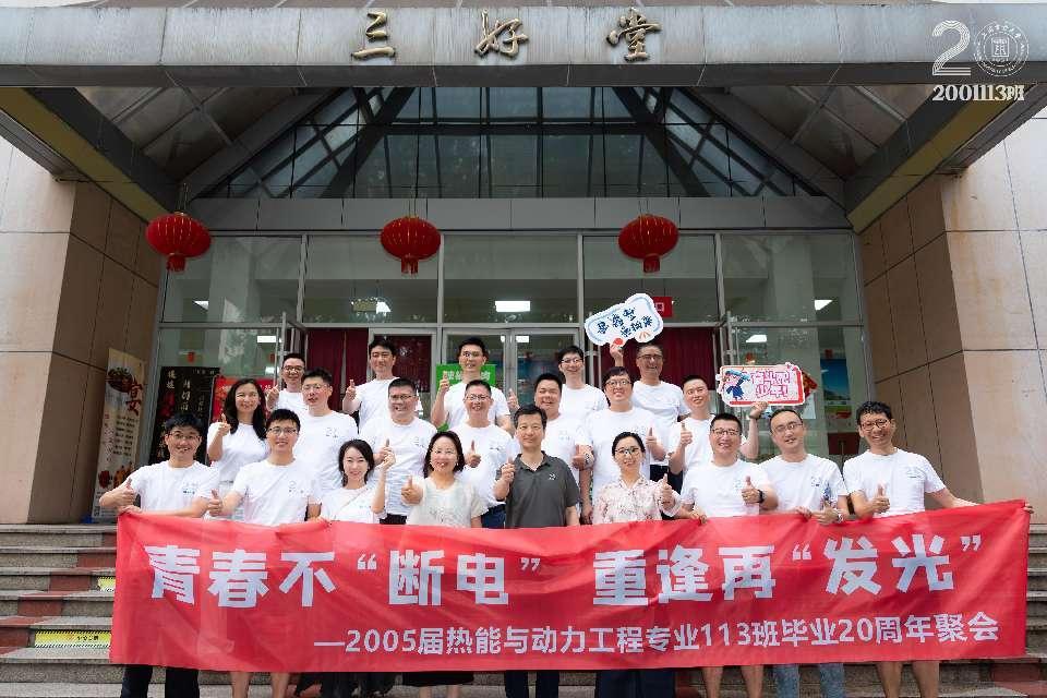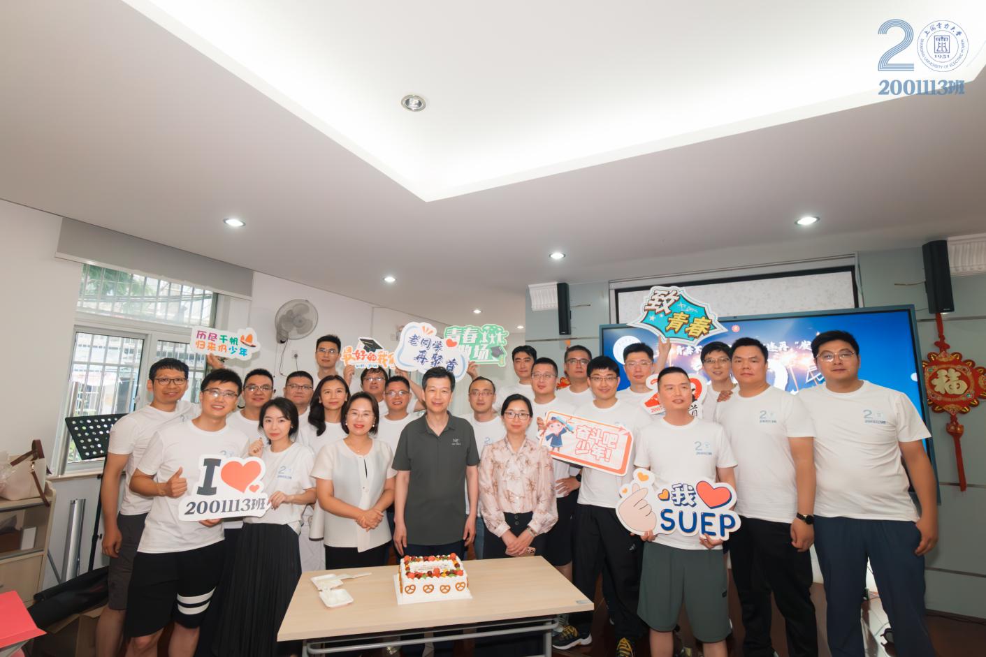 2025年6月21日,热能与动力工程专业2001113班近20名校友重返母校,在杨浦校区举行了一场温馨而难忘的毕业20周年聚会。活动以“青春不‘断电’,重逢再‘发光’”为主题,校友们与昔日师长欢聚一堂,共忆青春岁月,畅谈未来发展。能机学院党委书记潘卫国、副书记周婷以及班级原辅导员司军艳参加此次活动。