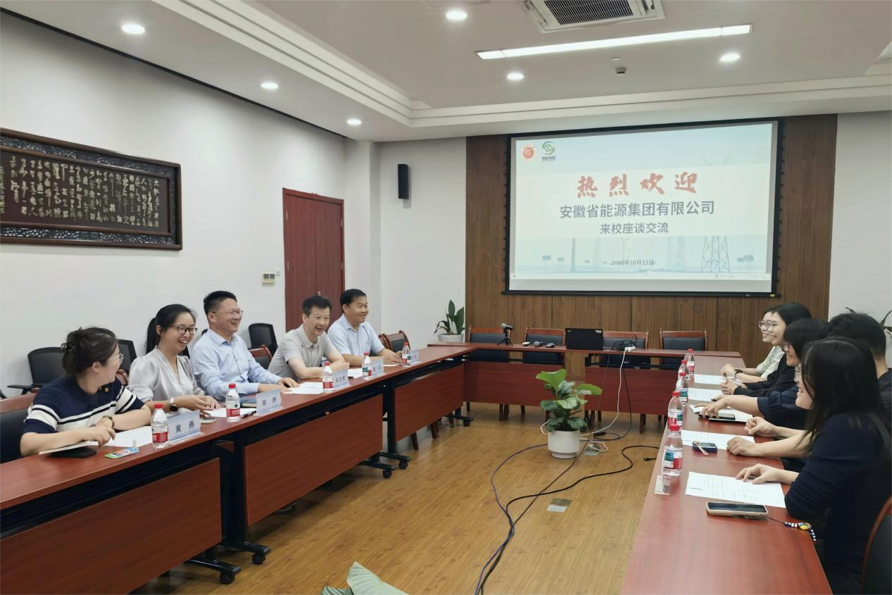 10月13日,上海电力大学与安徽省能源集团有限公司在临港校区学术楼105会议室举行座谈交流。校党委副书记、副校长朱克勇、能源与机械工程学院党委书记潘卫国及相关教师代表与安徽省皖能股份有限公司党委组织部主任李颖、安徽省能源集团有限公司党委组织部主管夏黎强等一行出席会议。