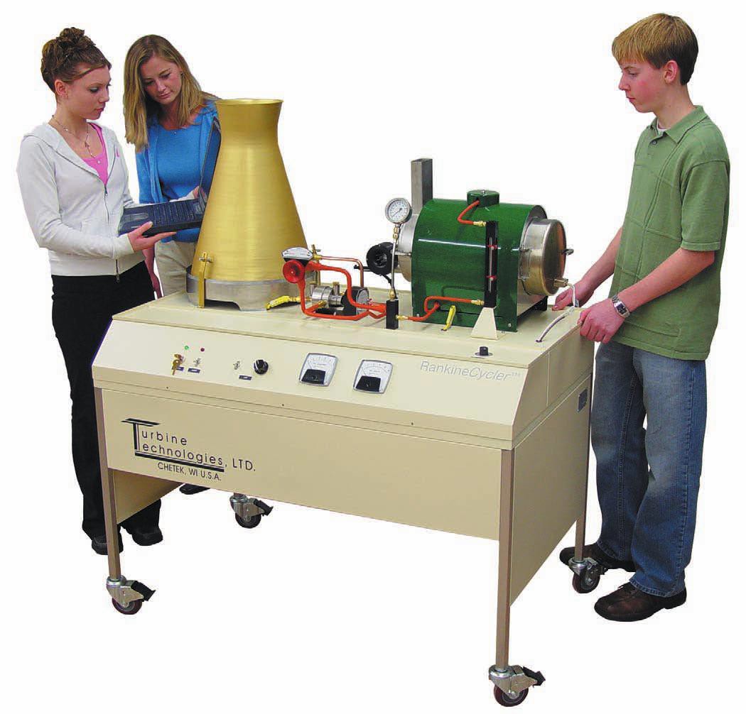 一套完整的微型蒸汽轮机发电实验系统,用以表证热力学循环、质量与能量守恒及电力生产过程。