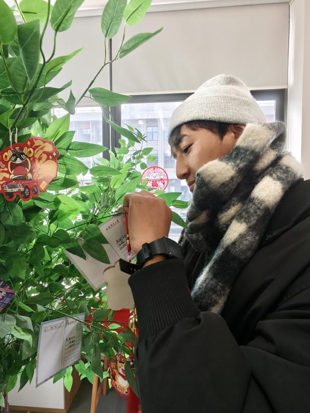 活动现场氛围轻松融洽,一件件满载心意的手工作品陆续完成,承载着同学们对新春的美好期盼。活动尾声,同学们将亲手书写的新年祝福卡片系挂在学院“希望树”上,既寄托了对学业精进、科研突破的殷切愿景,也寓意着个人成长与学院发展同频共振、携手共进,让留校的节日更添温情。