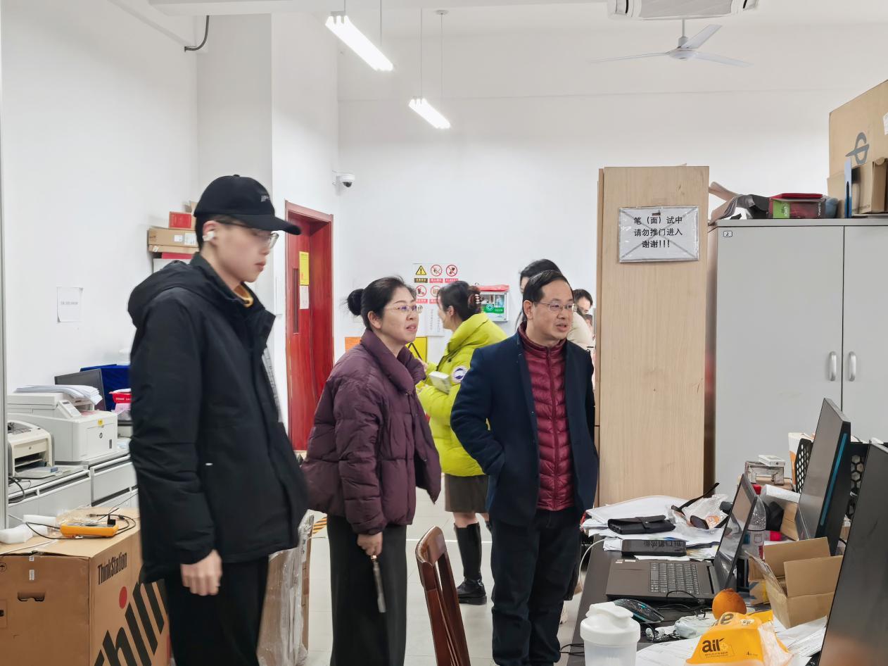 学院始终将留校学生安全放在首位,扎实推进假期安全保障各项工作。1月27日,学院党委书记朱群志、党委副书记涂莹亮带队,联合实验室负责人、研究生辅导员组建安全检查组,对实验室、研究生工作站等重点区域开展安全隐患专项排查,并与留校研究生亲切交谈,细致了解大家的科研进度与生活诉求,叮嘱同学们在专注科研的同时,严守安全操作规程,确保度过一个平安充实的假期。