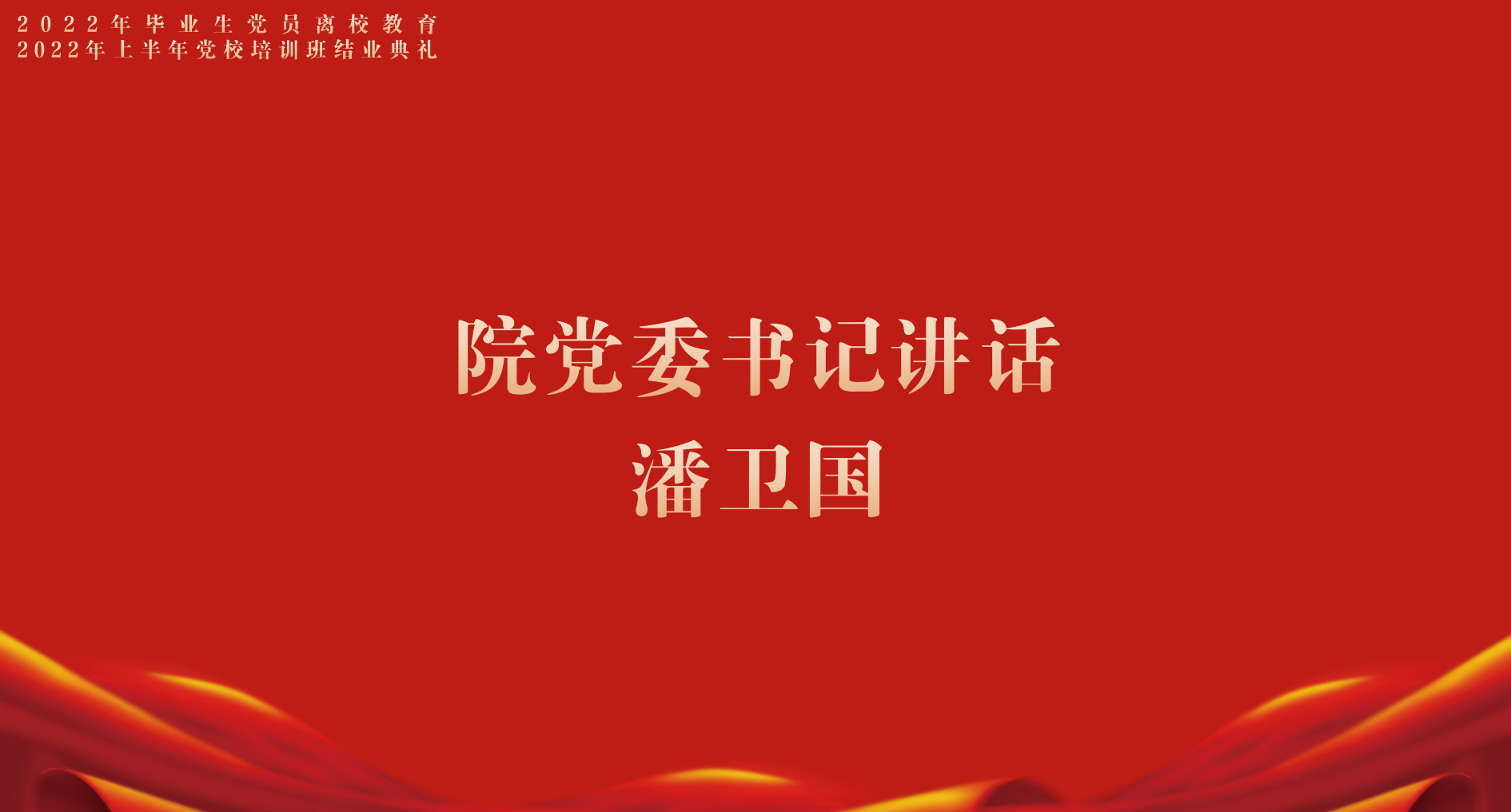 学院党委书记潘卫国老师指出,在今年防疫工作中,学生党员和志愿者展现出来的责任和担当,生动诠释了为人民服务的宗旨。潘老师号召毕业生党员和党校培训班学员要秉持这份责任与担当,要始终坚持人民立场、践行使命、勇于作为希望毕业生党员用实际行动践行伟大建党精神,希望党校培训班学员继续加强学习,用自己的知识和才干服务同学、服务班级、服务学院。