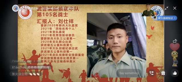 随后,来自经济与管理学院的李昱璋、能源与机械工程学院的刘仕祥和电气工程学院的康洁轩分别为大家介绍了自己的军旅生活。李昱璋为大家详细介绍了入伍前需要做的准备工作,帮助自己能够更快更好的适应部队生活。刘仕祥从连队艰苦卓绝的训练入手,让大家领略到了特种侦察队员的风采。康洁轩不仅分享了自己在部队的日常生活,还介绍了自己退伍后跨院系转专业的流程和注意事项。最后,仝晶晶作为一名退伍老兵,为大家分享了特战女兵的训练生活以及在部队中的所知所获,让大家看到了女兵的飒爽英姿。