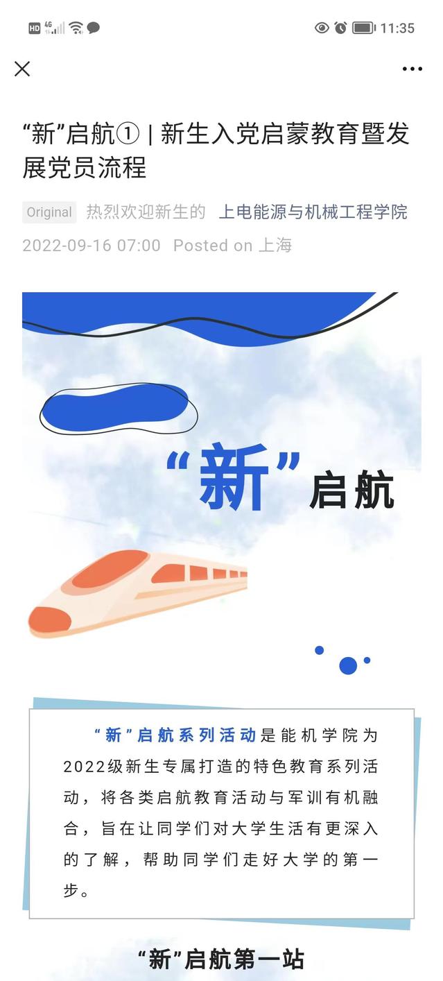 “新”启航特色主题教育系列活动,是在当前疫情防控常态化管理形势下学院在入学教育形式上的不断探索和创新,活动充分利用2022级新生军训的课余时间,采用线上会议室和微信视频号直播的方式,组织学院相关教师和学生共同参与入学教育,形成全员育人的格局,取得了非常好的响应和反馈。在本学年内,学院会继续按照入学教育相关安排组织各类内容丰富、形式多样的主题活动,希望2022级新生能够从系列主题活动中汲取精神滋养、凝聚奋进力量、担起时代责任,用越是艰险越向前的勇毅精神,展现上电青年人的精神面貌。
