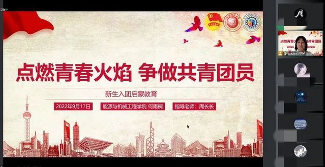 9月12日,能源与机械工程学院通过云端课堂开展2022级新生入党启蒙教育,切实帮助新生系好人生第一粒扣子,筑牢信仰根基。入党启蒙第一课由学院专职组织员王喆讲授,详细地向新生介绍了中国共产党的性质、宗旨、申请入党的条件以及一名合格共产党员的标准,同时讲解了入党申请书的撰写格式,引导广大新生增强对中国共产党的认识,切实提高政治觉悟与思想素质,积极向党组织靠拢,为新生更好开启大学生活奠定了坚实的思想基础。