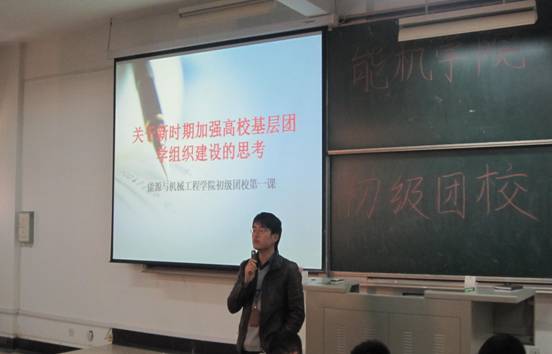 2013年11月18日下午,上海电力学院能源与机械工程学院在北4316教室举办了第二期初级团校,能源与机械工程学院党总支书记助理金斐老师出席并担任本期主讲嘉宾,能机学院团总支书记王喆老师及全体团学成员到场。