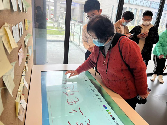 为了激发学生知党爱国,敬校荣校的情怀,深入了解校情校史,活动的第一站来到了校史馆。在讲解员的引导下,同学们一起重温了学校几十年来不断发展壮大的风雨历程。赵老师是学校发展的亲历者、见证者,参观过程中赵老师给同学们讲述了许多不为人知的上电故事,仿佛过去那一帧帧场景就浮在眼前。同学们从一个个展板、一件件物品、一张张照片中,深切地感受到了上电厚重的历史积淀、丰硕的办学成果和奋发的进取精神,体会到七十余载薪火传承中“爱国 勤学 务实 奋进”的校训精神,增强了同学们对学校的认同感、归属感和自豪感。参观最后,赵老师在留言寄语板上饱含深情地写下了“愿上电前途似锦”字样,以此表达她对上电未来的美好祝愿。