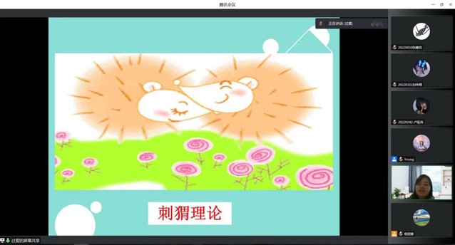 “你是社恐还是社牛?” 过爱老师通过网络流行语“社牛”和“社恐”的对比开场,引发同学们的兴趣,同学们带着思考,开启了此次学习之旅。和谐的人际关系是一种人际交往的润滑剂,有利于人与人之间和谐、友好的相处,也有利于个人和集体的健康发展。讲座中过爱老师为同学们介绍了刺猬理论,强调在人际沟通中,亲近感和界限感同样重要,人与人之间是一种“我为人人、人人为我”的交往。