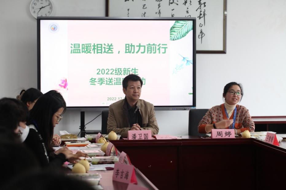 为了进一步深入了解2022级家庭经济困难学生入校后的生活和学习情况,更好地开展资助育人工作,能机学院于12月7日以“温暖相送、助力前行”为主题召开2022级新生冬季送温暖活动。学院党委书记潘卫国、党委副书记周婷、辅导员赵贵青、张鸿燕出席,在校的2022级家庭经济困难学生参会,会议由学院资助专项工作负责人梅饶兰主持。
