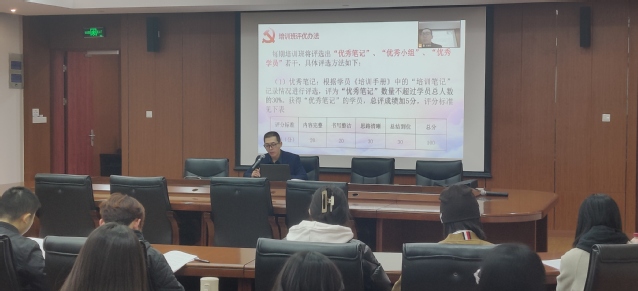 首先,潘老师发表了开班致辞,明确了此次办班宗旨,并要求学员深刻学习领悟党的二十大精神,深入学习习近平新时代中国特色社会主义思想,进一步端正入党动机,确立为共产主义事业奋斗终身的信念,坚定“四个自信”、增强“四个意识”、做到“两个维护”。王喆老师对培训安排、培训要求、培训班奖惩制度进行了讲解,明确了培训班的纪律要求。