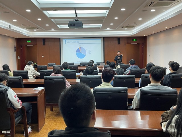 余建诚首先从“什么是心理委员”、“心理委员的职责”等内容切入,为同学们明确了作为心理委员的基本责任和义务,并以统计图的形式罗列出当前大学生心理问题现状,其中包括焦虑、沮丧、自卑等心理负面情绪。随后就“何为心理危机”、“何为危机干预”、“心理危机干预原则”、“心理危机干预策略”等问题进行了全面详细的阐述,教会大家如何识别心理危机信号,包括人的情绪、行为、认知、生理等表现。在理论讲解后,余建诚还结合危机干预实例加以进一步分析,向大家讲解如何化解心理危机,帮助学生尽快降低心理风险,恢复心理平衡。