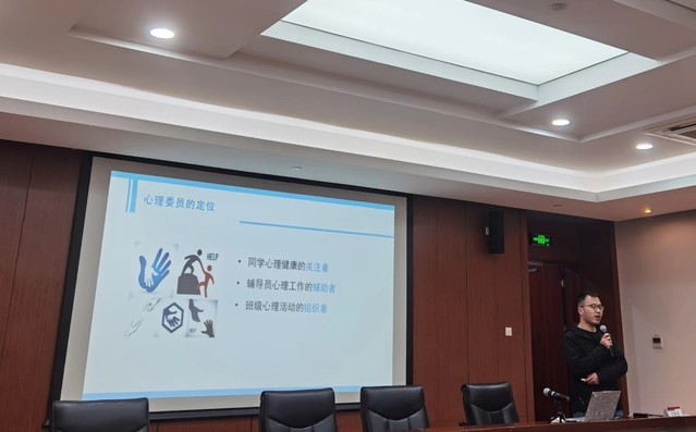 最后,余老师以“在助人中成长,在挑战中成熟”寄语全体心理委员,希望各位心理委员能明晰工作职责,通过朋辈支持关心、关怀身边的同学,当好心理健康维持的示范者、心理健康知识的宣传者,切实履职尽责,共同维护同学们心理平安健康。