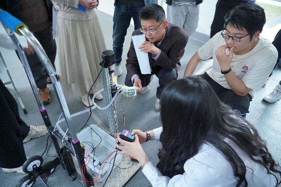 本次比赛由教务处主办能机学院承办,面向全校开展,经过筛选共有来自三个学院的二十支队伍参赛,分为智慧农业机械组、低碳生活机械组和创意组三类比赛现场选手们紧锣密鼓地着手布置作品展示海报、组装作品零部件、调试作品的运行、做最后的介绍准备,现场呈现一番紧张刺激的氛围。