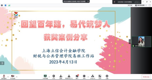 随后,陈滟莹作为上海立信会计金融学院财税与公共管理学院易班负责老师从工作思路、工作内容、工作成效等方面详细介绍了《回望百年路,易代筑梦人》暑期社会实践活动案例。该案例聚焦党史学习主题,旨在献礼建党百年、深入贯彻习近平新时代中国特色社会主义思想、在青年学生中间深入推进党史学习教育,投身社会实践,感悟红色党史。活动包括开展青年学子建党主题原创作品征集、采访工作站内入党积极分子和预备党员同学,同时积极响应并参与上海市“网络青春力量,献礼百年华诞”大学生“红色寻访专列”活动。活动期间,收到同学们积极地投稿反馈,获得了2021年全国“优秀易班共建案例”。