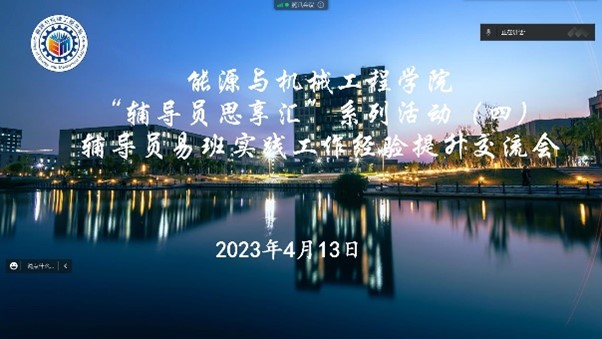 为深入学习贯彻党的二十大精神,提升辅导员在易班平台建设的能力素质,推动学生实践队伍之间的交流学习,4月13日,能机学院组织开展了辅导员易班实践工作经验提升线上交流会,本次活动特邀请了上海立信会计金融学院财税与公共管理学院辅导员陈滟莹及其易班学生团队进行经验分享,同时邀请了外国语学院辅导员及其“国歌嘹亮”学生志愿者服务队,能机学院全体辅导员及其“沿江河之脉,谱人文之韵”学生实践队参与本次交流,会议由能机学院辅导员仝晶晶主持。