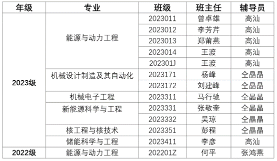 根据《中共上海电力学院能源与机械工程学院委员会关于学生班导师工作条例(试行)》相关要求,经个人申请和研究所推荐,由学院党委会审议通过,决定聘任以下13名教师担任2023级本科新生班级和2022级卓越工程师班班导师,具体名单如下:
