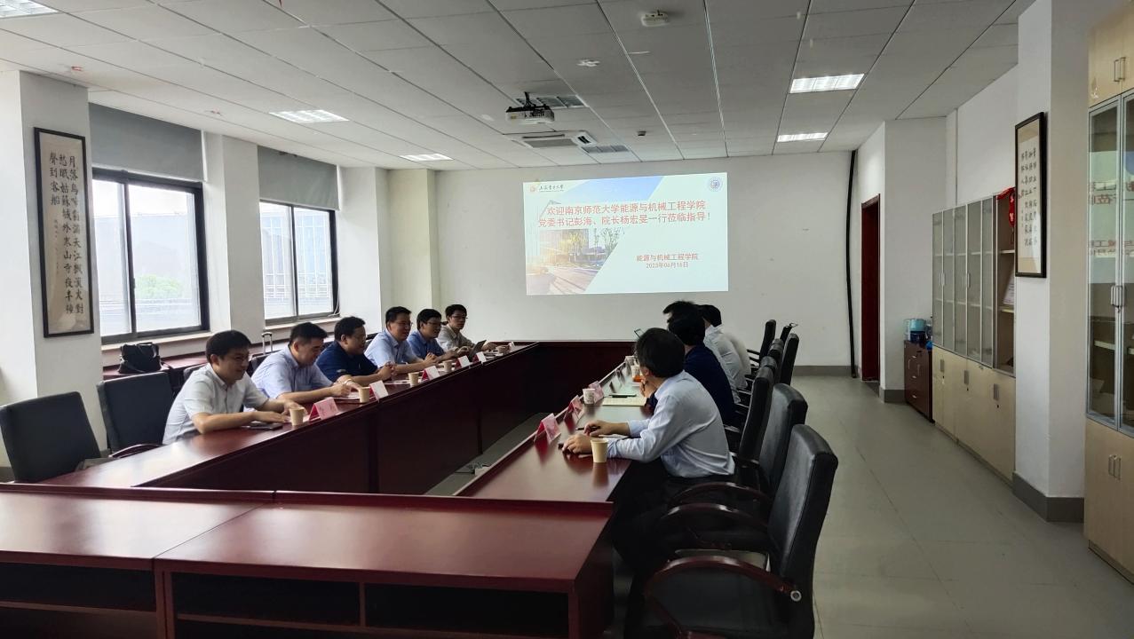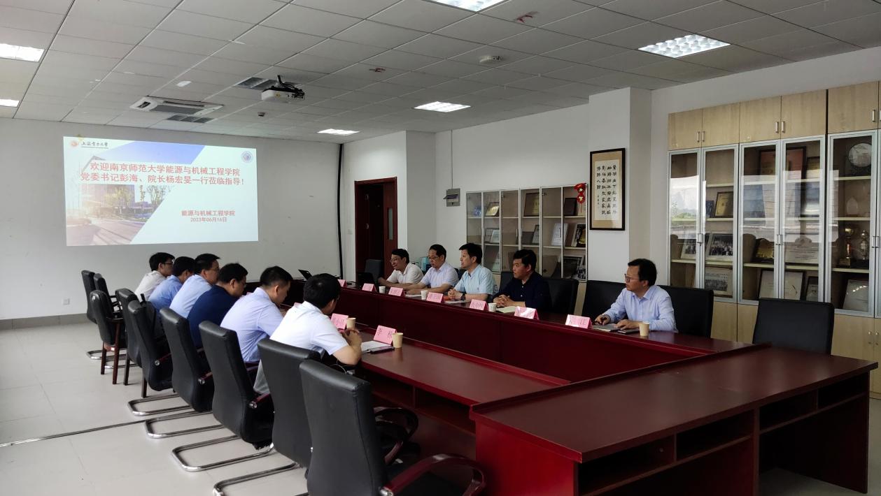 为深入开展学习贯彻习近平新时代中国特色社会主义思想主题教育,探索新时代专业人才培养模式、创新协同育人体系,6月16日南京师范大学能源与机械工程学院党委书记彭海、院长杨宏旻一行来威廉希尔官网能源与机械工程学院开展调研交流。能源与机械工程学院党委书记潘卫国、院长朱群志、副院长仇中柱及相关老师参加了调研。