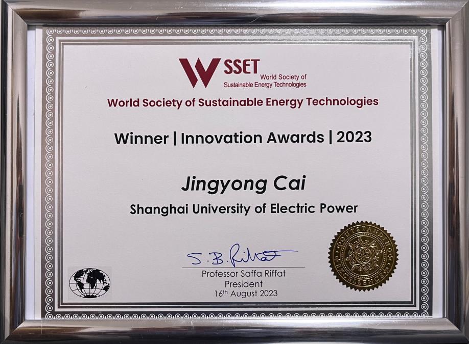 WSSET创新奖是世界可持续能源技术学会设立的重要奖项,对国际上在可再生能源系统、发电技术、低碳建筑以及未来城市等领域取得的创新性成果进行表彰,旨在促进和鼓励创新性技术的推广和应用。世界可持续能源技术协会总部设在英国诺丁汉大学,名誉主席是英国前副首相Prescott勋爵(Lord Prescott),现任主席为欧盟科学院院士,英国诺丁汉大学可持续能源技术研究中心主任Saffa Riffat教授。