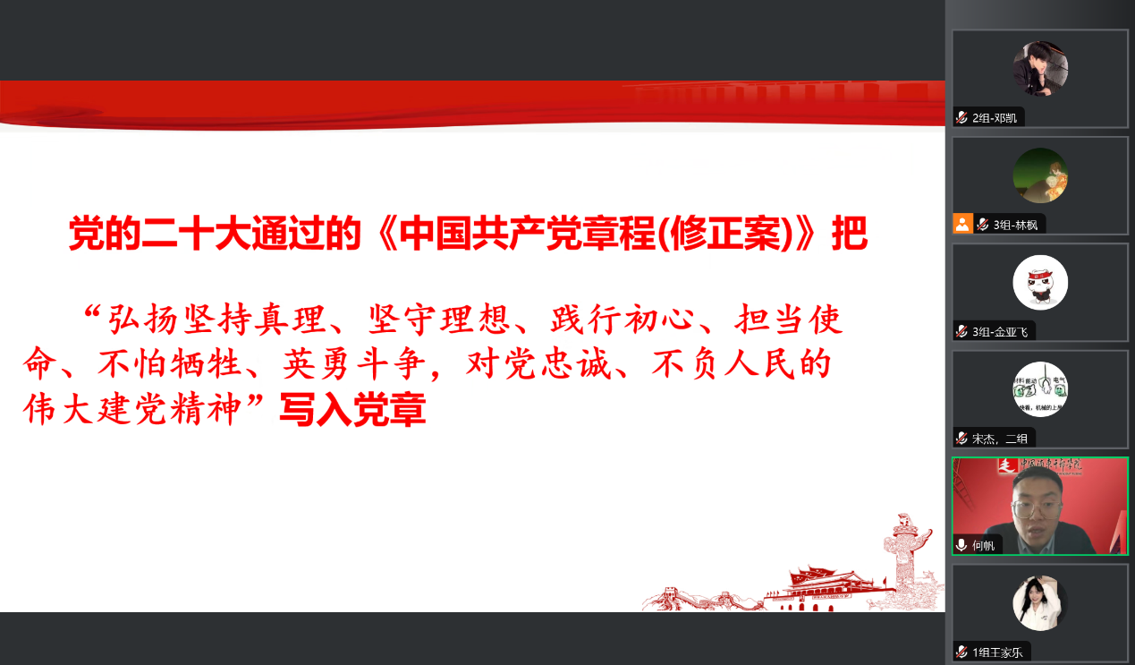 何老师强调要从中国百年发展当中弘扬伟大建党精神,感悟党的二十大精神自信自强、守正创新、踔厉奋发、勇毅前行,全面建成社会主义现代化强国、全面推进中华民族伟大复兴。