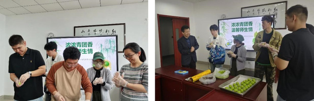 活动现场,学院组织师生们共同体验亲手制作青团。在掌握做青团的步骤后,师生们纷纷跃跃欲试,亲手制作的青团大小不一、形状各异,欢乐和新奇交融中,现场一片其乐融融。同学们通过自制青团的过程,感受中华民族传统文化的独特魅力、了解青团纪念先人和团圆的寓意。品味自己劳动的果实,让师生们倍感美味,通过互相沟通、分工协作,大家也收获了团队合作的乐趣,增进了彼此之间的友谊。