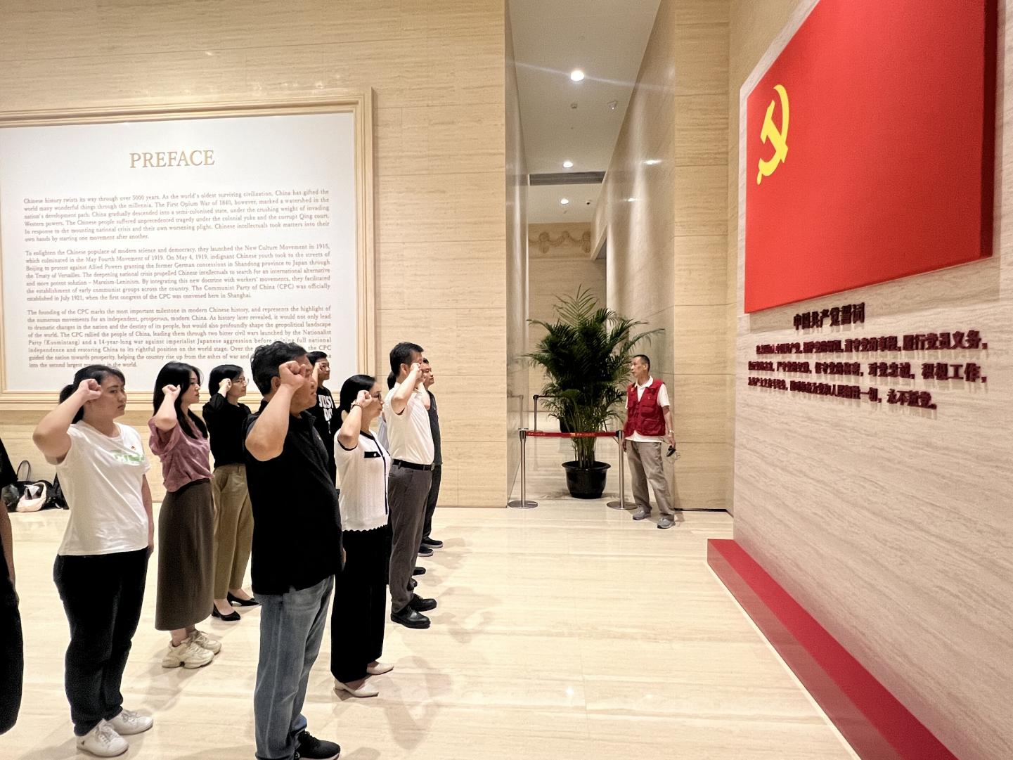 参观最后,大家进行了重温入党誓词仪式。活动结束后,教师党员们纷纷表示收获满满,大家认为,通过参观中共一大纪念馆,并结合党的纪律建设进行学习,不仅加深了对党史的认识和理解,同时增强了个人的党性修养和纪律意识。