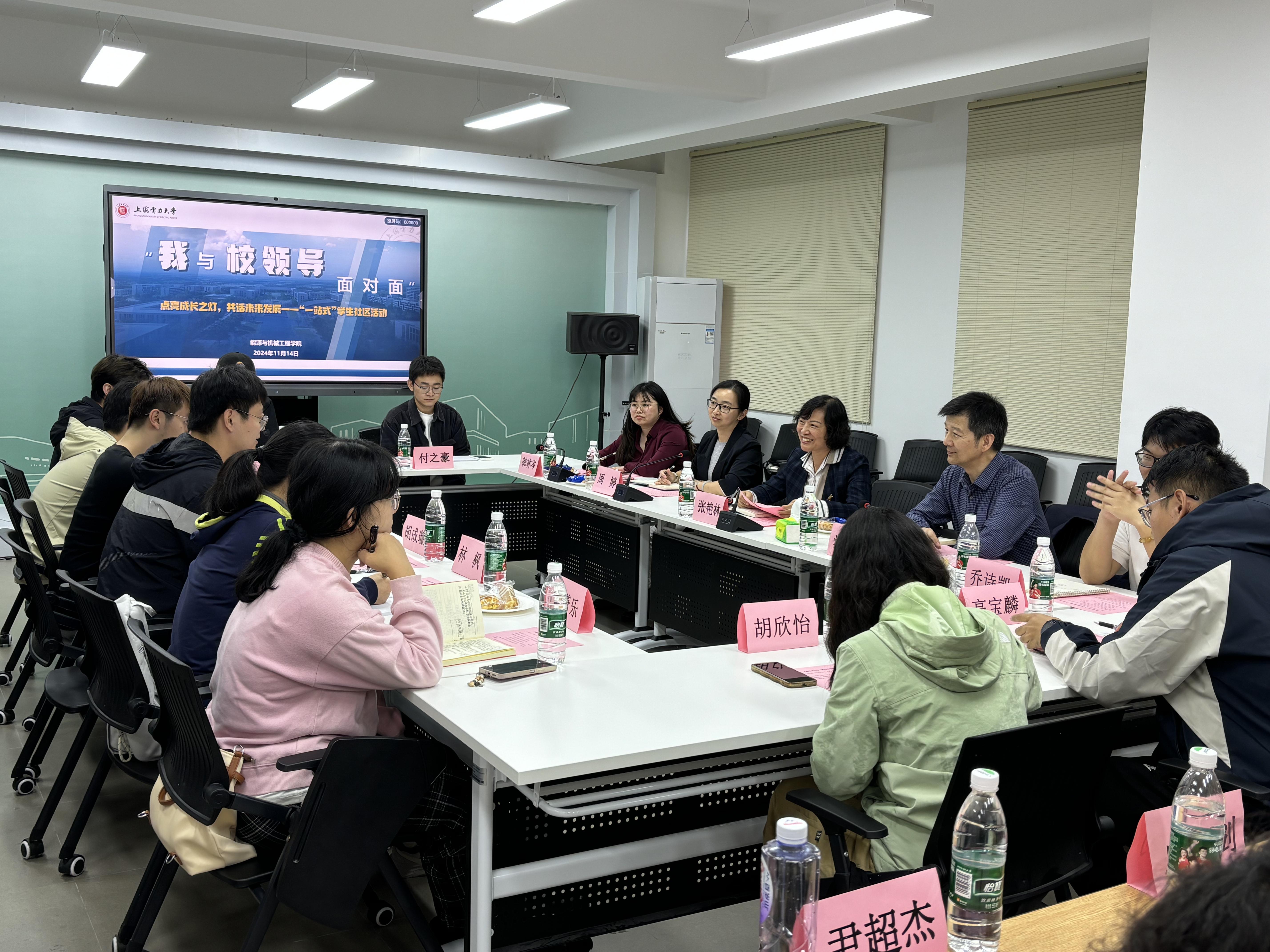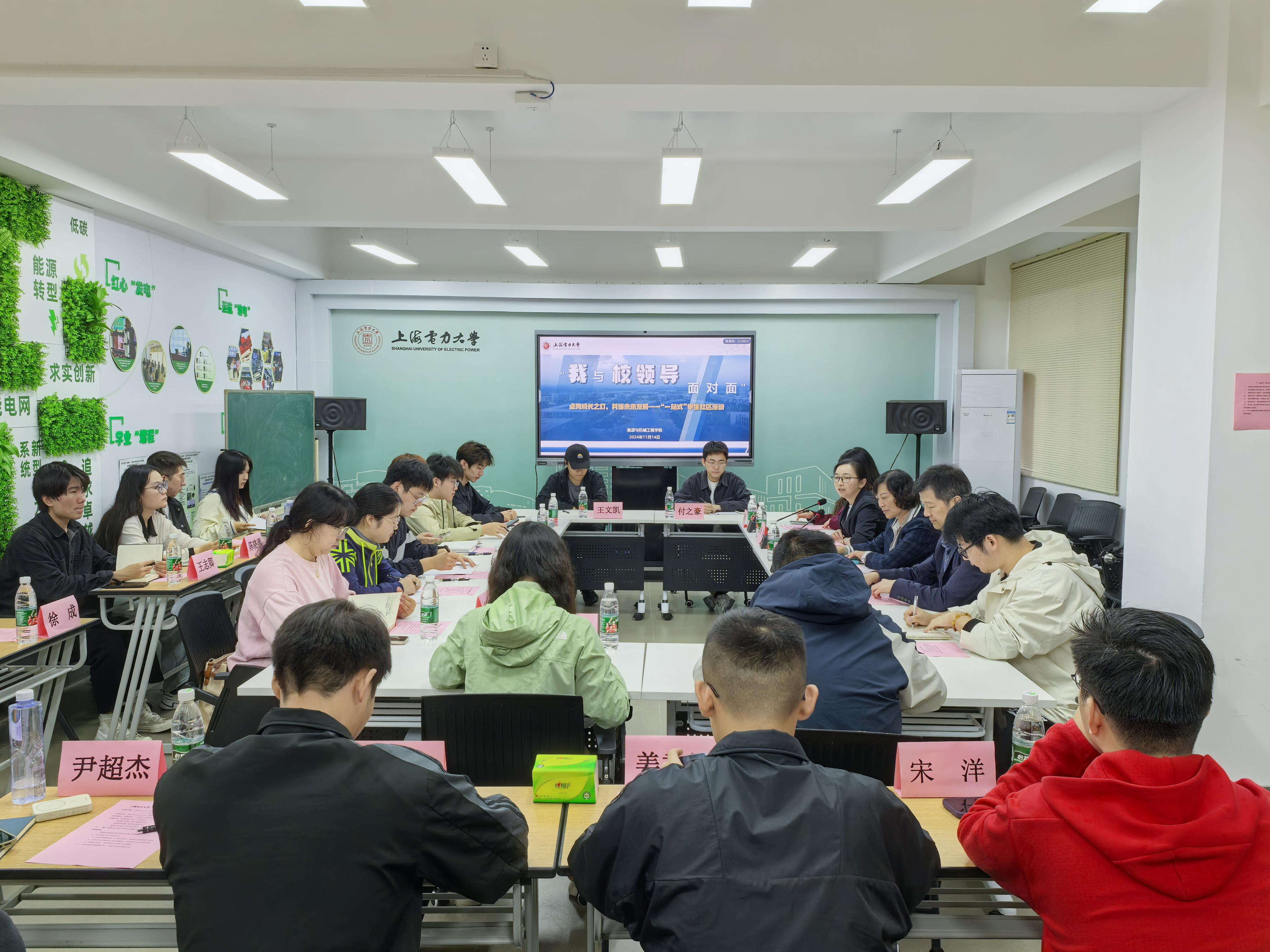 为深入倾听学生心声,推动学校“一站式”学生社区建设走深走实,助力学生成长成才,11月14日下午,能源与机械工程学院在临港校区“一站式”学生社区综合服务中心召开“我与校领导面对面”学生座谈会。校党委副书记、纪委书记张艳林,能源与机械工程学院党委书记潘卫国,能源与机械工程学院团委书记韩林岑及近30名本研学生代表参加。座谈会由能源与机械工程学院党委副书记周婷主持。