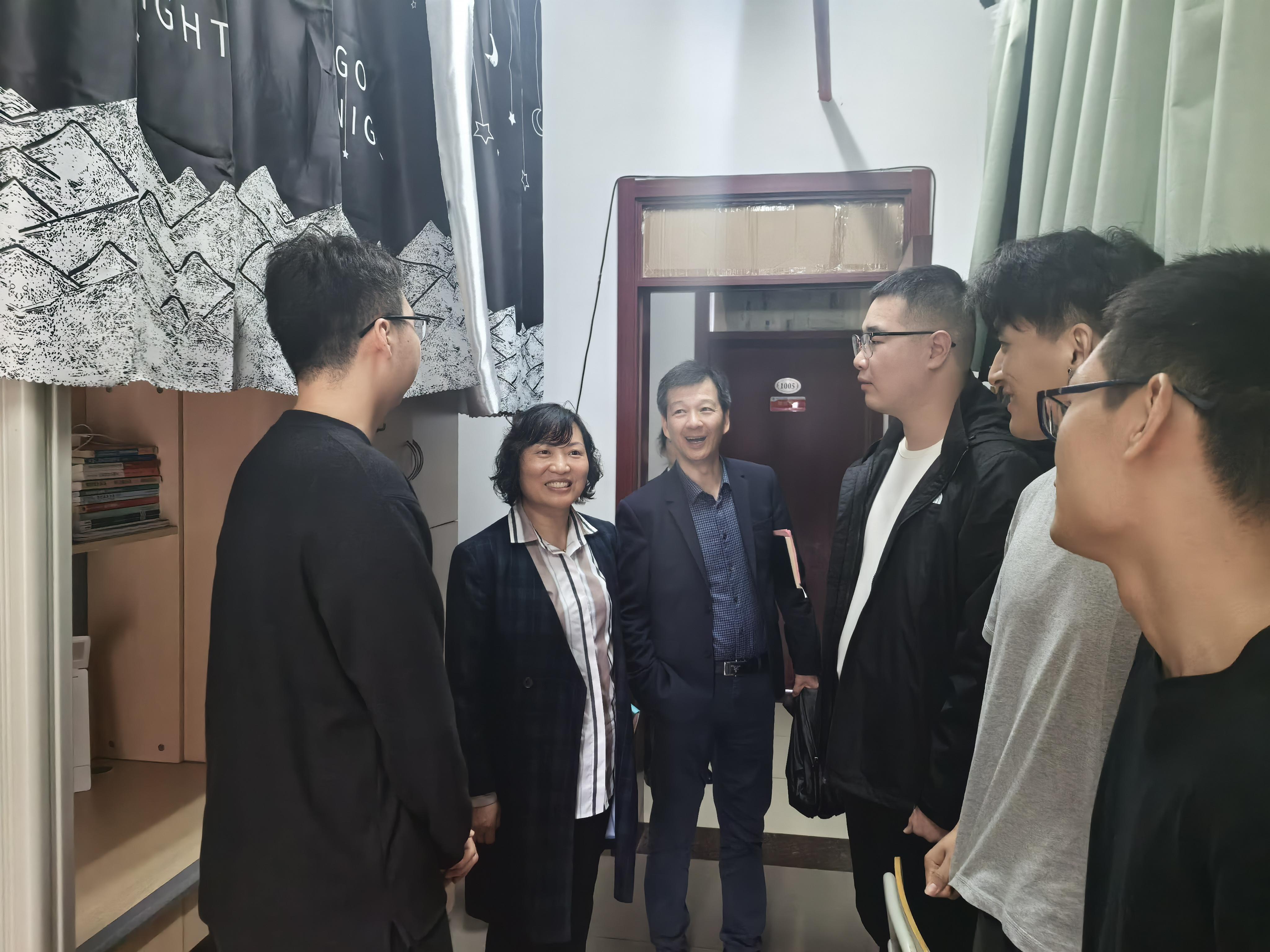 会后,张艳林与同学们一起前往7号学生公寓的新生宿舍,与宿舍里的同学们亲切交谈,关心同学们的日常生活,重点关注了新生入校后的学业、生活等各方面的适应情况,勉励同学们尽快调整好各方面状态,以饱满的热情和充足的干劲投入到未来的学习、工作和生活中来。