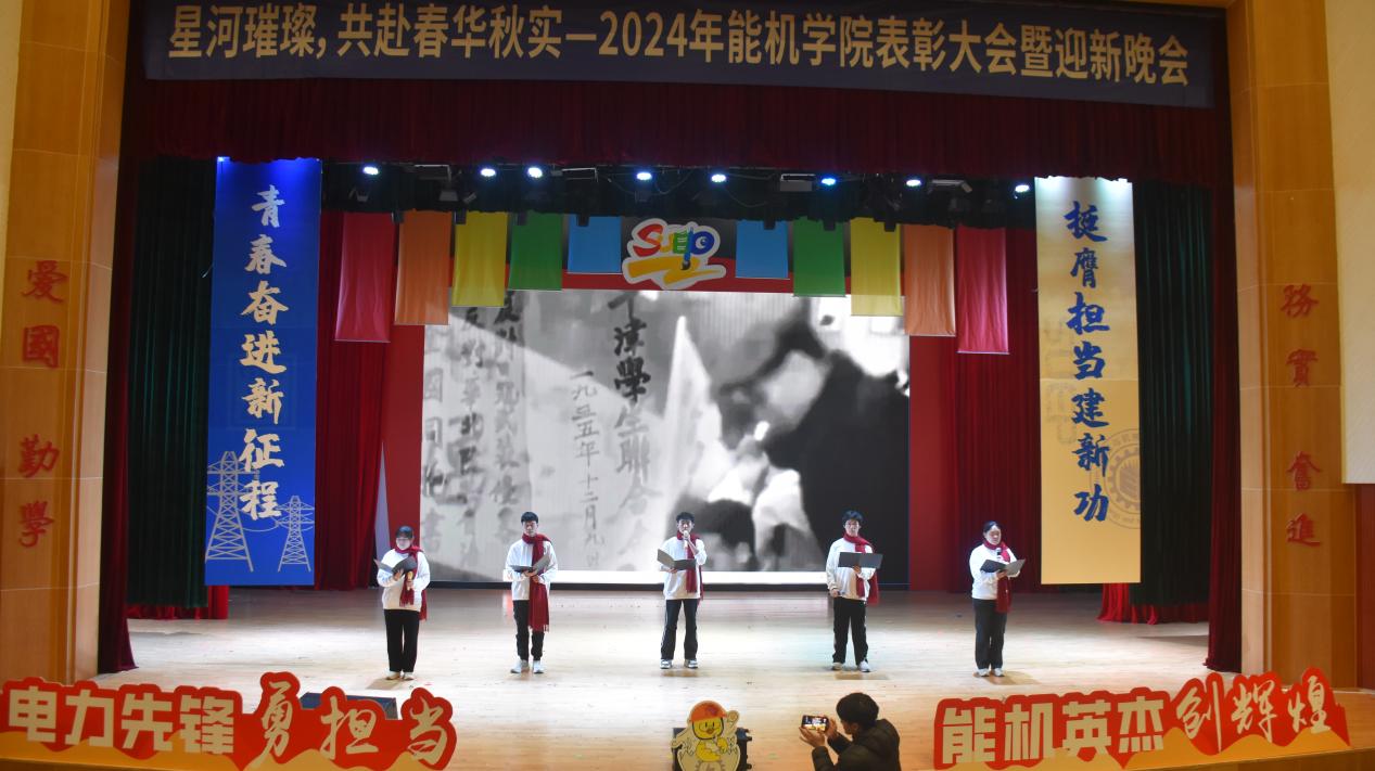 能源与机械工程学院2024年度一二·九表彰大会暨迎新晚会在热烈的氛围中圆满落幕。大会通过一系列表彰环节展示了过去一年中学院青年学生在各个领域取得的显著成绩,以榜样和典型的树立勉励同学们百尺竿头更进一步;通过新生们带来的精彩绝伦的表演节目,展现青年学生的活力与激情,鼓励青年学生们充满活力、奋发有为。相信能机学子在未来将继续发挥电力先锋的担当精神,在学习生活上不断提升自我、再创辉煌。
