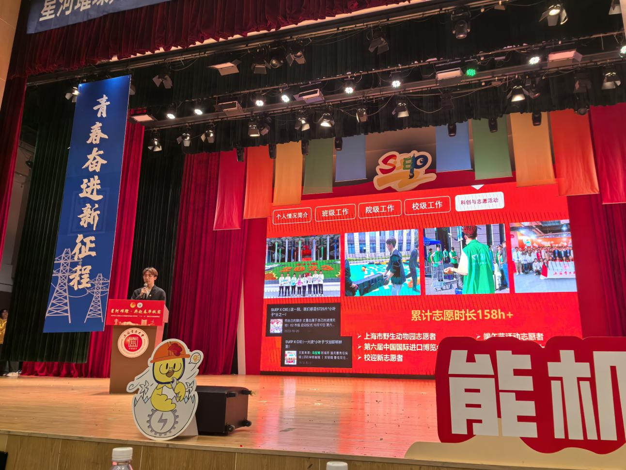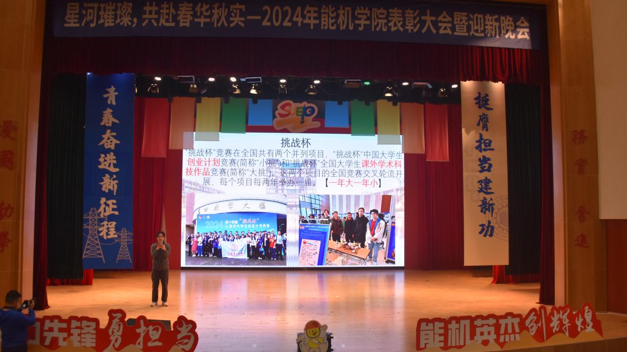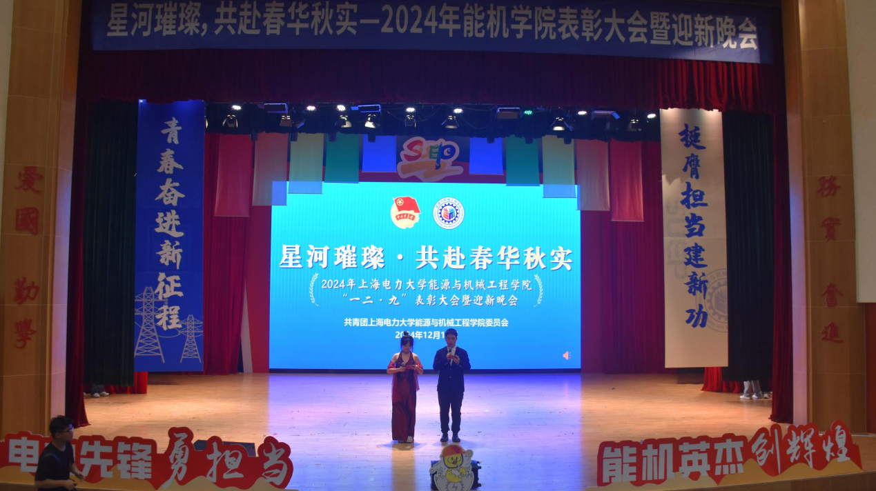 2024年12月13日下午13:30,能源与机械工程学院“星河璀璨,共赴春华秋实”一二·九表彰大会暨迎新晚会在上海电力大学临港校区大学生活动中心演艺厅隆重举行。能机学院院长朱群志、党委副书记周婷、副院长仇中柱、副院长陈乃超、团委书记韩林岑、全体辅导员以及学生代表出席。